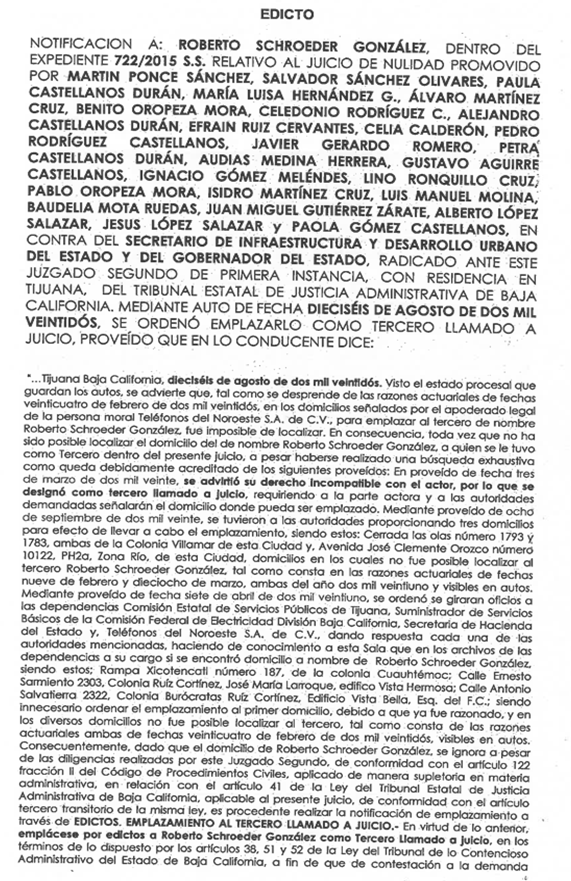 TIJUANA, BAJA CALIFORNIA. SE EMPLAZA A : UNION DE COLONOS DEL FRACCIONAMIENTO