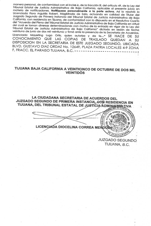 C.P. 22320.- TIJUANA, B. C. 13 DE OCTUBRE DE 2022