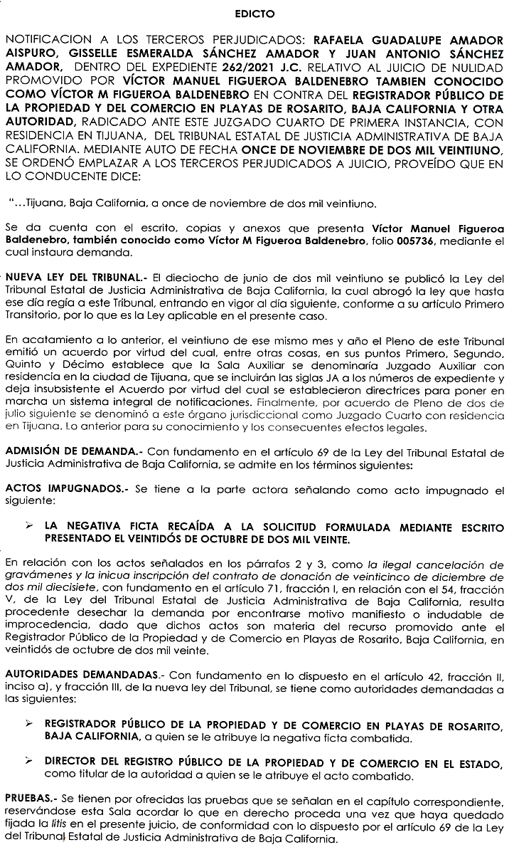 PODER JUDICIAL DEL ESTADO DE BAJA CALIFORNIA. PUBLÍQUESE EL PRESENTE POR TRES