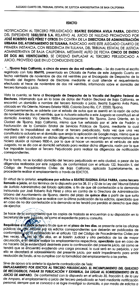 PERIÓDICO LOCAL DE MAYOR CIRCULACION EN TIJUANA Y EN EL BOLETÍN JUDICIAL DEL
