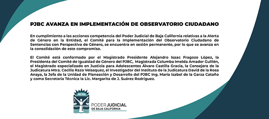 Contacto Calle Dr. Humberto Torres #167, esquina con Avenida Pioneros Centro Cívico Mexicali, Baja California C.P. 21000 (686) 900-9099 Ext. 1785 y 1786 Mexicali (664) 900-9099 Ext. 2760 y 2761 Tijuana igualdad.genero@pjbc.gob.mx
